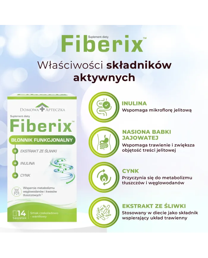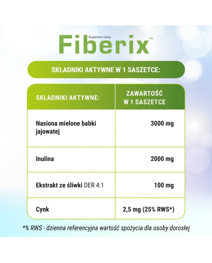 - Zawiera Błonnik, inulinę, śliwkę i cynk