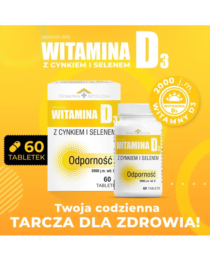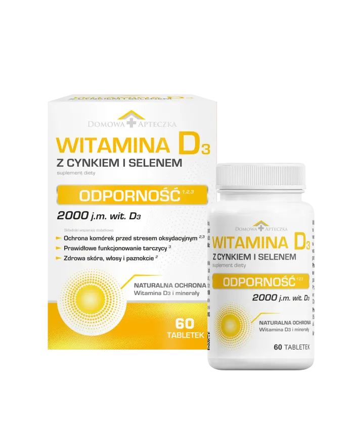 Witamina D3 z cynkiem i selenem to kompleksowy suplement diety stworzony z myślą o wsparciu odporności, zdrowia tarczycy oraz prawidłowego funkcjonowania organizmu. Unikalne połączenie tych trzech składników działa synergicznie, wzmacniając ich skuteczność i zapewniając kompleksowe wsparcie każdego dnia. Wysoka dawka witaminy D3 (2000 j.m.) wspomaga utrzymanie zdrowych kości i prawidłowego poziomu wapnia, natomiast cynk i selen wspierają procesy metaboliczne, ochronę komórek oraz równowagę hormonalną. To idealny wybór dla osób dbających o odporność, energię i ogólną kondycję organizmu.