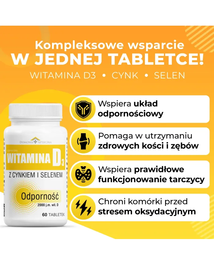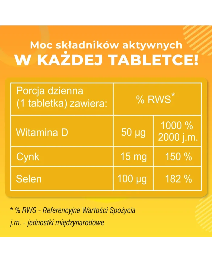- Synergiczne połączenie trzech kluczowych składników: witaminy D3, cynku i selenu