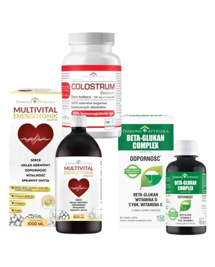 Każdy produkt z zestawu możesz kupić osobno: Beta-glukan Complex | Multivital Energotonik | Colostrum Bovinum. Interesują Cię inne zestawy? Sprawdź kategorię lub pełną ofertę zestawów.