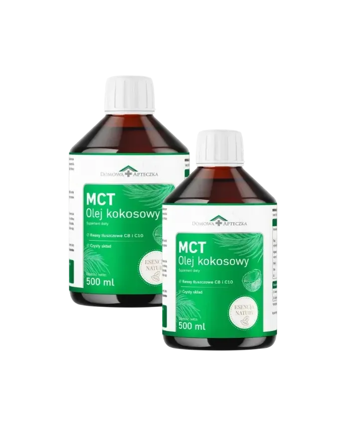 Zestaw zawiera dwa opakowania produktu MCT Olej Kokosowy Esencja Natury