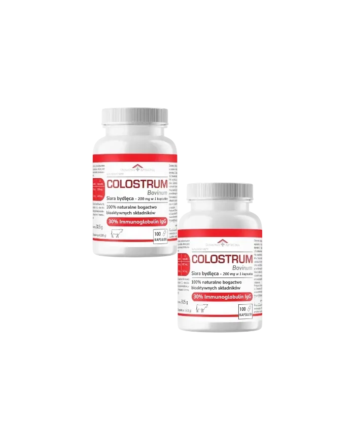 Colostrum Bovinum to suplement diety zawierający wysokiej jakości siarę bydlęcą w kapsułkach, stanowiący naturalne źródło bioaktywnych składników wspierających organizm. Preparat dostarcza immunoglobulin IgG, białek oraz cennych substancji odżywczych, które odgrywają istotną rolę w prawidłowym funkcjonowaniu układu odpornościowego. Regularna suplementacja colostrum pomaga wspierać naturalne mechanizmy obronne organizmu, szczególnie w okresach zwiększonego zapotrzebowania. Produkt oparty jest na surowcu pozyskiwanym od polskich krów z kontrolowanych hodowli, co gwarantuje wysoką jakość i bezpieczeństwo.